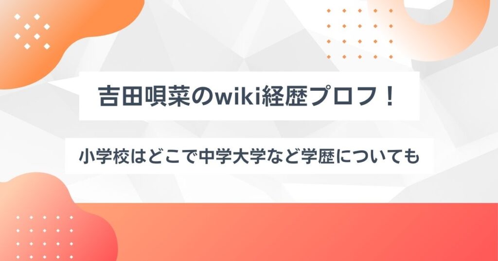 吉田唄菜のwiki経歴プロフ!小学校はどこで中学大学など学歴についても