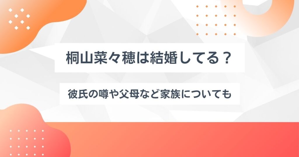 桐山菜々穂は結婚してる?彼氏の噂や父母など家族についても