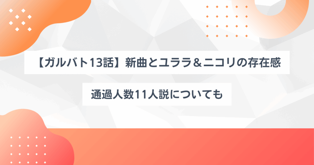 【ガルバト13話】新曲とユララ&ニコリの存在感|通過人数11人説についても