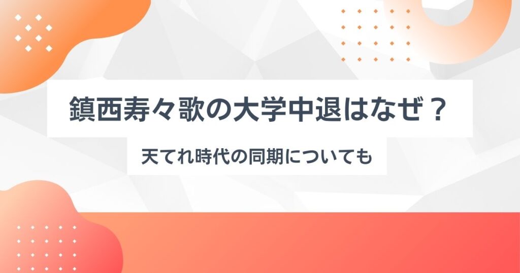 FRUITS ZIPPERのメンバーとして注目を集める鎮西寿々歌さん。 実は子役時代から長いキャリアを積み重ねてきた存在です。 近年では「大学中退」というワードがラジオ番組で明かされ、気になった方も多いのでは。 なぜ鎮西寿々歌さんは大学を中退する選択を... -