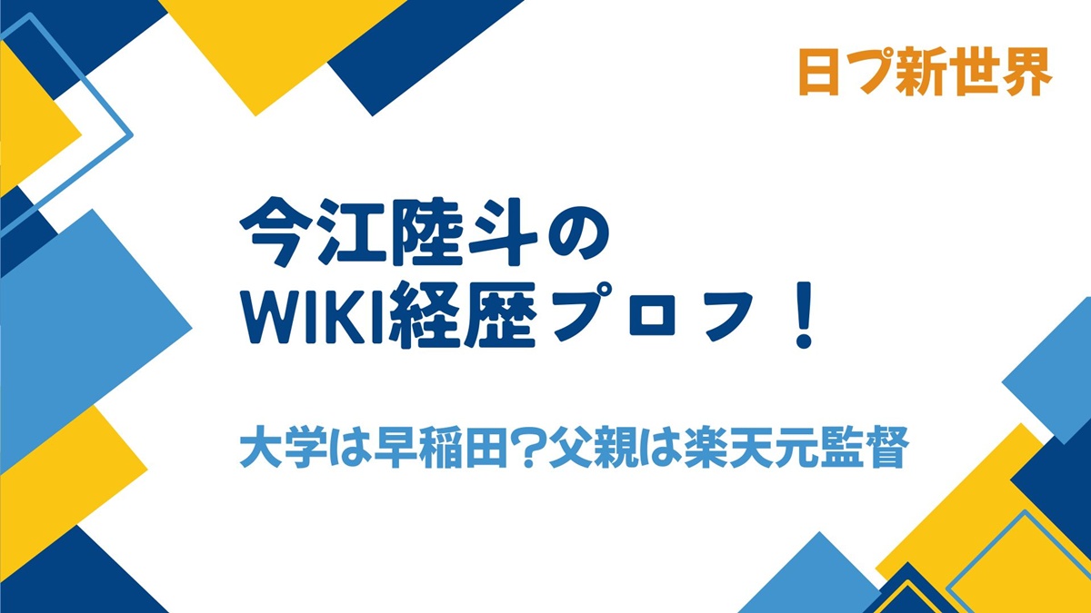 今江陸斗さんの家族について、特に父親の今江敏晃さんは元プロ野球選手で、ロッテや楽天で活躍、楽天の監督も務めたWBC優勝メンバーです。