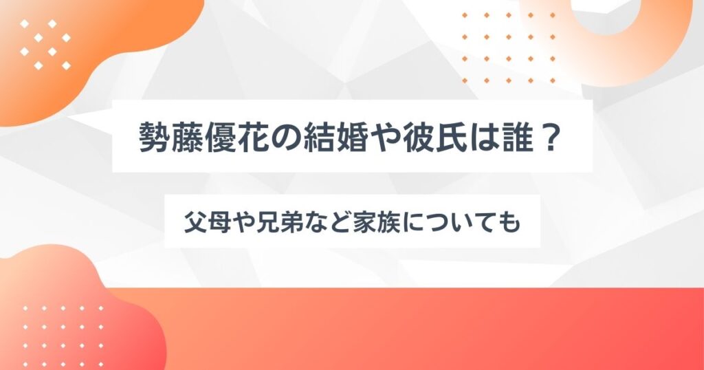 勢藤優花の結婚や彼氏は誰?父母や兄弟など家族についても