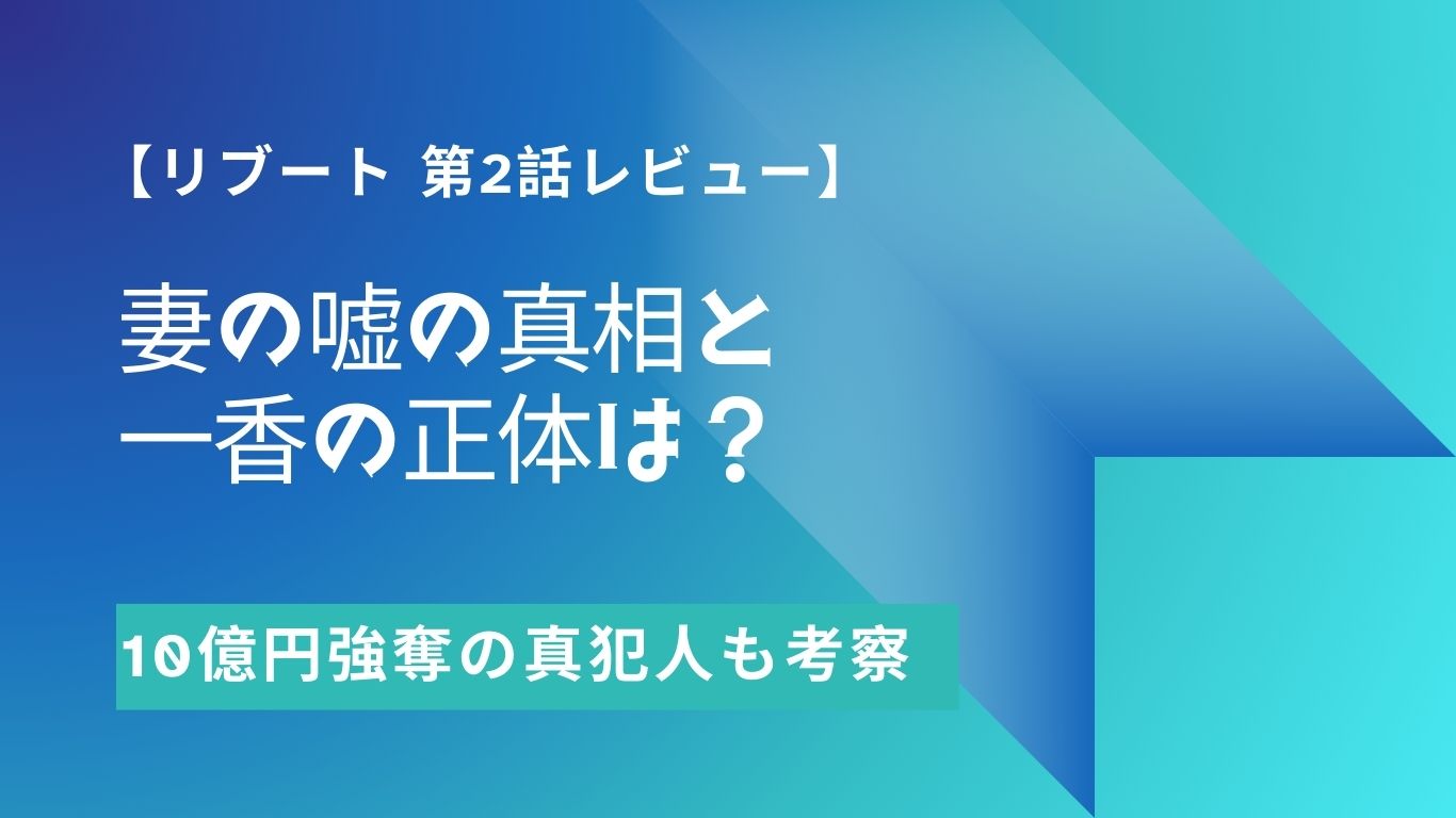リブート第2話考察:妻の嘘の真相と一香の正体は?10億円強奪の真犯人